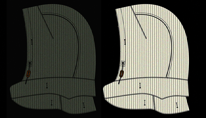 ①モッズコートやトラヴィスジャケットのライナーとして使用する場合は裏返して装着して下さい