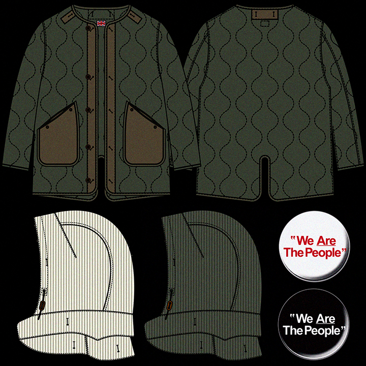 本日、RALEIGH より “M51🔄M65 Either Way Works” QUILTING LINER JACKET と “M51🔄M65 Either Way Works” TAKE ME THERE HOOD + ”We Are The People” 57mm BUTTON BADGE SET が入荷しました。*詳細は後日UPします