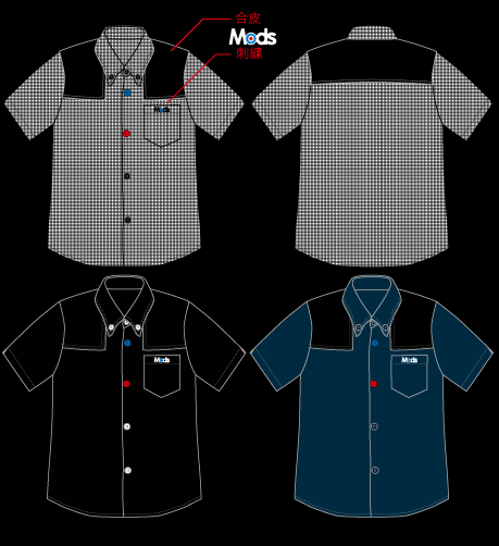 ボタンを大きくデフォルメしてカラーリングはターゲットマーク。ポケットにはさりげなく”MODS”の刺繍。